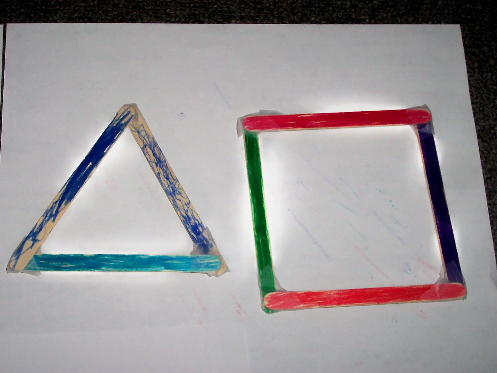 We made shapes today out of popsicle sticks. I took some pics: